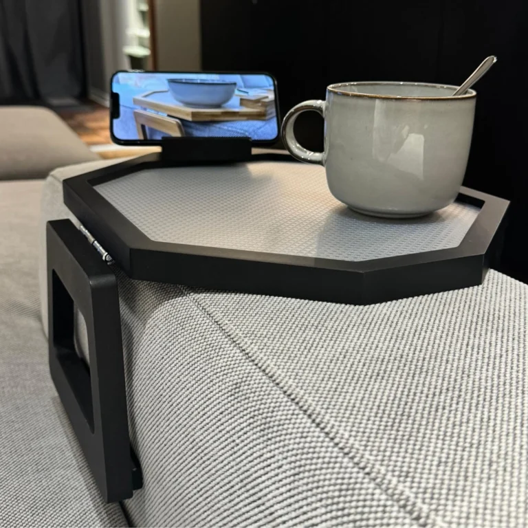 Sofos padėklas su neslystančiu kilimėliu ir mobiliuoju laikikliu