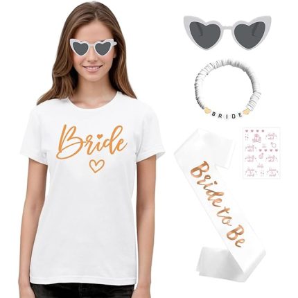 Pasiruoškite nepamirštamam mergvakariui su stilingu ir viską apimančiu nuotakos marškinėlių rinkiniu – „Bride T-Shirt Set“! Šis rinkinys yra puiki dovana