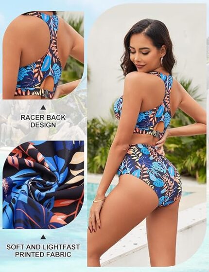 Moteriškas dviejų dalių bikini komplektas su aukštu liemeniu – patogus, elegantiškas ir pritaikytas išraiškingoms formoms Atrodyk pasitikinti savimi tiek paplūdimyje,