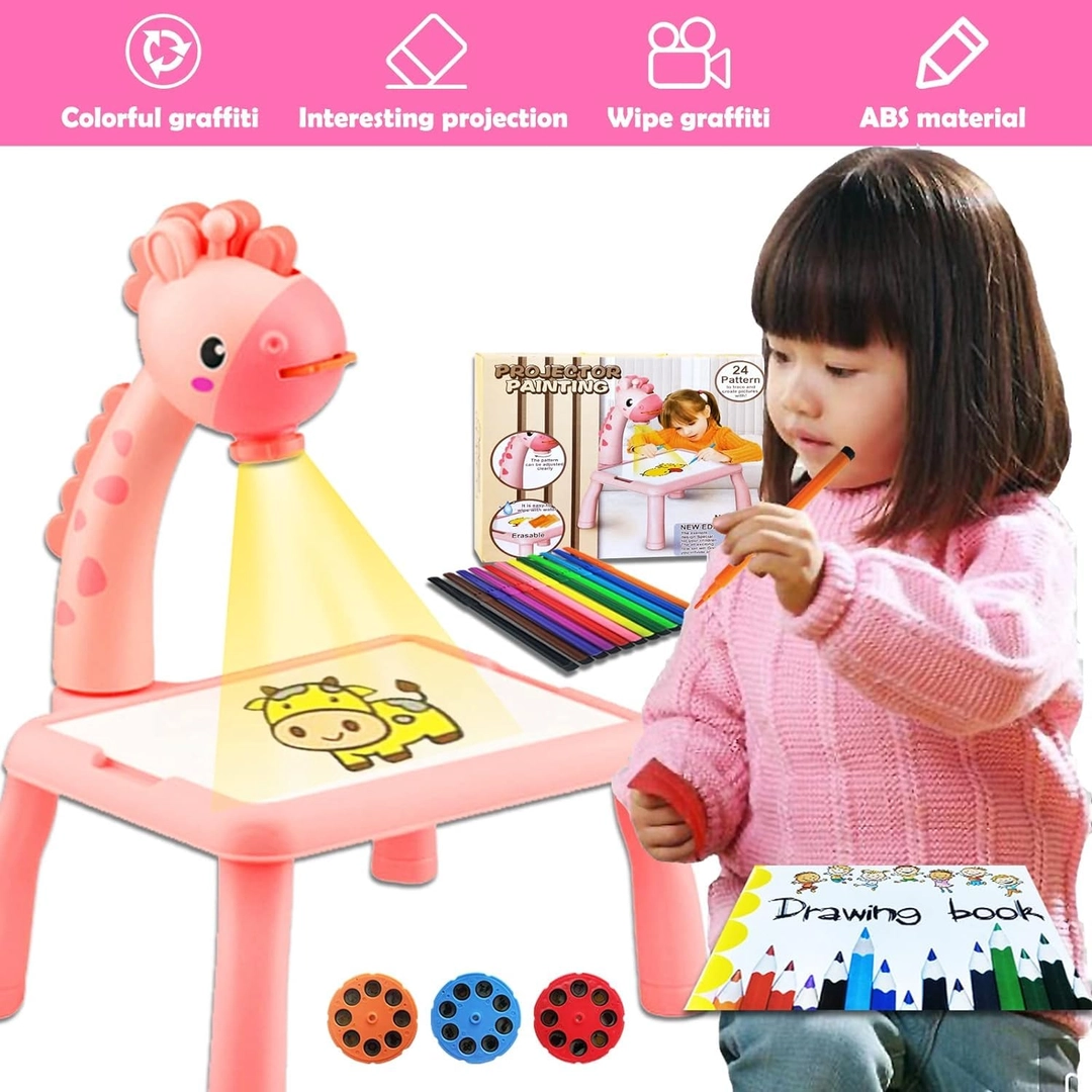Padovanokite savo vaikui kūrybiškumo ir smagaus mokymosi džiaugsmą su šiuo žavingu projektoriniu piešimo staliuku vaikams! Šis rožinis piešimo staliukas su žirafiuko formos projektoriumi sukurtas taip, kad skatintų mažylių meninę saviraišką ir lavintų rankų koordinaciją nuo pat mažens. Komplekte yra 24 skirtingi šablonai, spalvoti flomasteriai, piešimo sąsiuvinis ir lengvai naudojamas projektorius, kuris leidžia vaikui sekti rodomą vaizdą ir jį perpiešti. ABS plastikas garantuoja saugumą ir ilgaamžiškumą, o nuvalomas paviršius leidžia piešti vėl ir vėl. Tinka vaikams nuo 2 metų – puiki dovana mažiesiems menininkams!